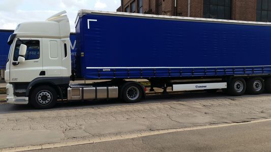 Ein Standardsattelauflieger mit Ladungssicherungszertifikat nach EN 12642 XL/ VDI 2700 sowie Gertränketransport.